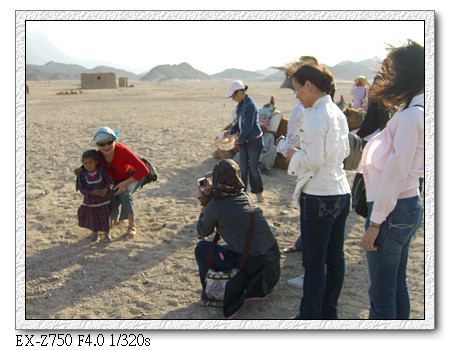 一路搖搖晃晃來到貝都因人村落。貝都因人與世隔絕,很少跟外界接觸,生活自給自足,只要是貝都因人就得遵從這規定。不過近年來生活不易,因此有些村落就跟我們參觀的村落一樣,利用觀光賺取一些生活物資。