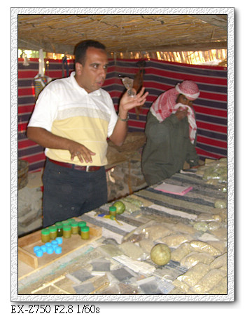 桌上這些都是貝都因人日常的用藥,可治療糖尿病、腎結石、胃病(拉肚子)、感冒(喉嚨疼)。