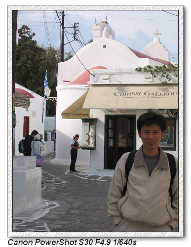 這裡有個小插曲,原本上午就要搭船前往聖托里尼,不過由於風浪太大,前往聖托里尼船隻不開,我們只好改變行程,繼續待在米克諾斯島,到下午兩點半先前往錫羅斯島(SYROS),再從錫羅斯島搭船到聖托里尼。