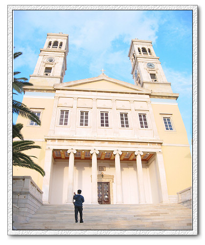 一到港口進巷子不久就看到這大建築物,我們要一直逛到約九點多才有船往聖托尼里。
