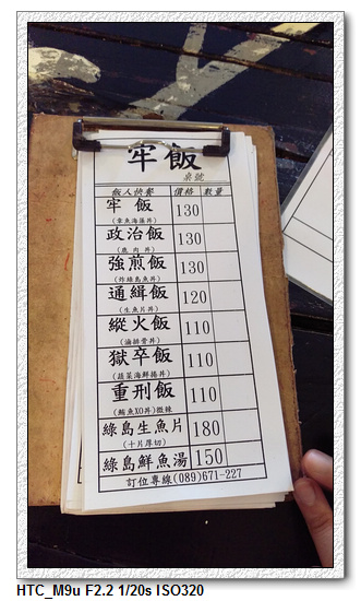 綠島有很多特色餐廳,今天午餐挑了一家牢飯。菜單名稱很有特色。