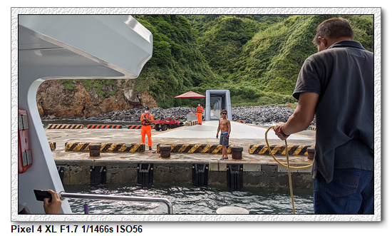 本來以為會等一陣子,很快的就開始集合大家要登船,一開始以為是附近的船隻,沒想到帶大家走了漁港半圈,在對角處登船,還沒登島先練腳力。