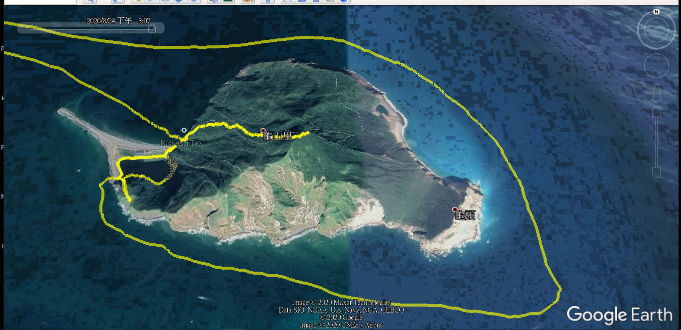 從南岸碼頭上船後,開始環繞龜山島的行程。船長開著蘭鯨號繞行龜山島一周+解說。