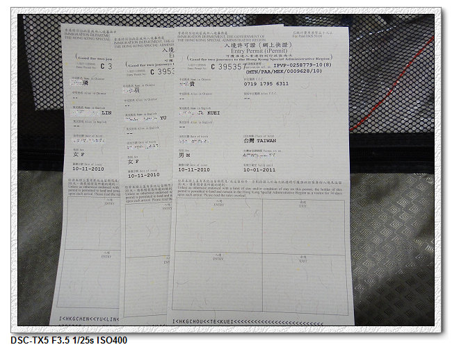 好不容易終於訂了日期,因為之前沒去過大陸,所以沒有辦法用台胞證,於是找了最簡單的簽證方式,就是找易遊網代辦電子港簽。從寄出到收到,前後大約不到一星期就拿到港簽,速度算快了。
