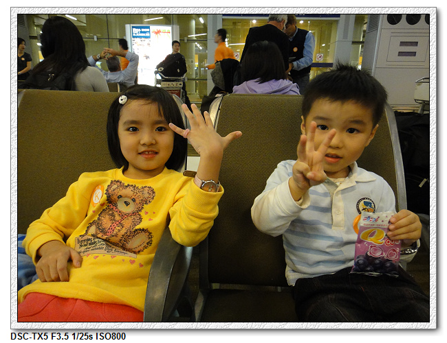 ▼【香港機場等待巴士,這兩位小朋友好不容易有互動了。】