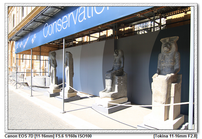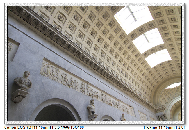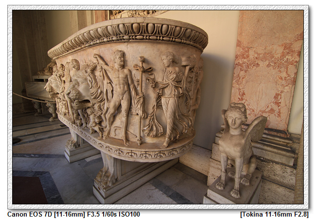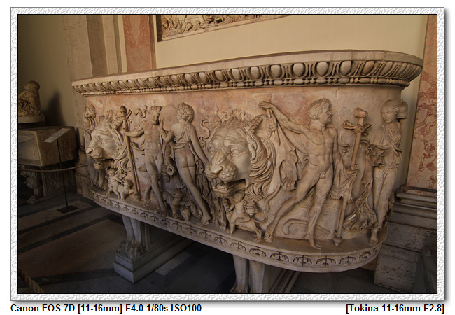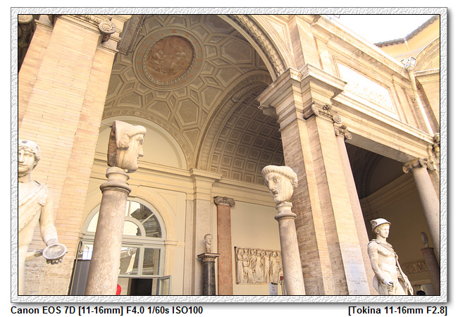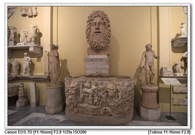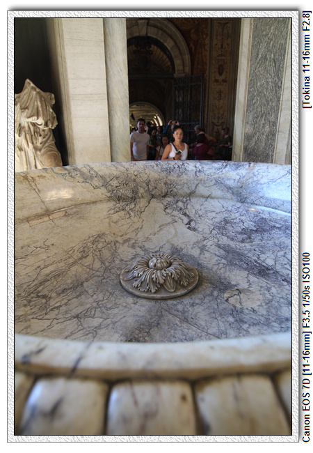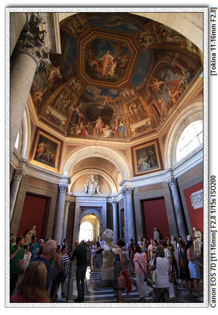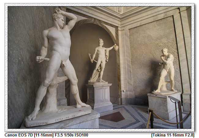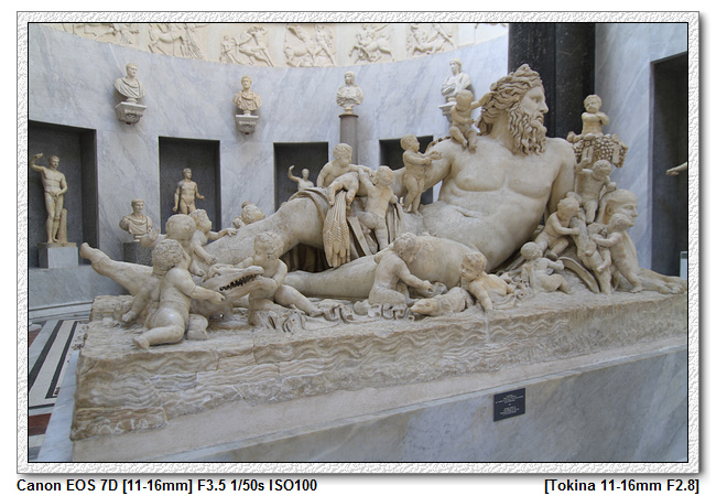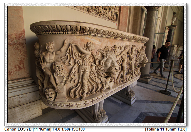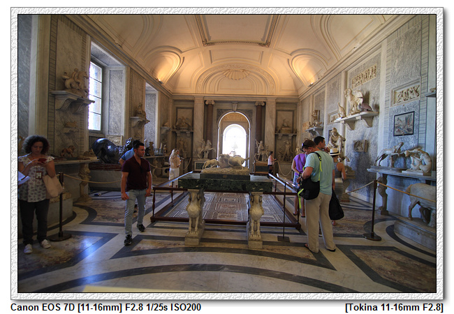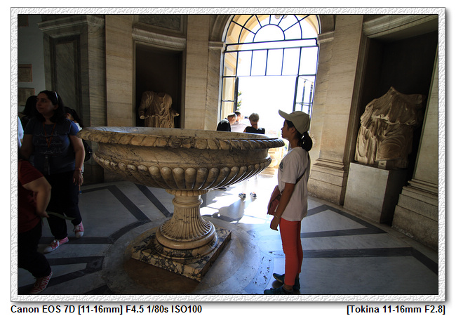 離開松果中庭之後,進入基拉蒙提博物館(Museo Chiaramonti),這裡陳列許多羅馬神祇 、羅馬帝國歷任皇帝等雕刻作品。第一次這麼近距離的看羅馬雕像,真的刻得微妙微翹,雕像身上的衣服皺摺好像是真的衣服一樣,衣服貼在身上的曲線也表現得很真實。有趣的是,很多男性雕像的生殖器,被後人蓋上葉子,顯得很不協調。據說是在1857年,教宗庇護四世覺得男性器官會激起淫慾,所以他拿著榔頭和鑿子,把幾百尊雕像都去勢了,後人替這些被去勢的雕像加上無花果葉遮掩。