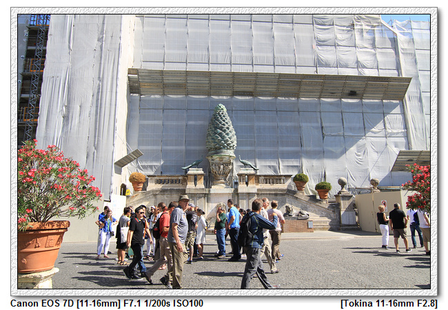 ▼【青銅松果,後方壁龕在整修;松果中庭】