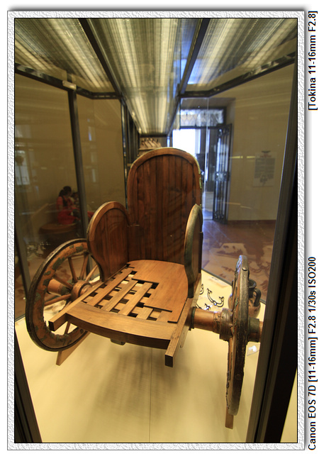 順著獅身像人潮往上走,來到一個岔路,岔路前方是前往掛毯陳列室的入口,不過看到滿滿的人潮,我們決定先逛樓梯上方旁邊的陳列室。這區沒甚麼人氣的陳列室,主要是展示馬車、飾品、陶器等物品。不過已經忘了是哪個時期的物品的。