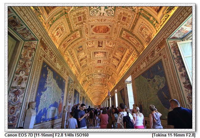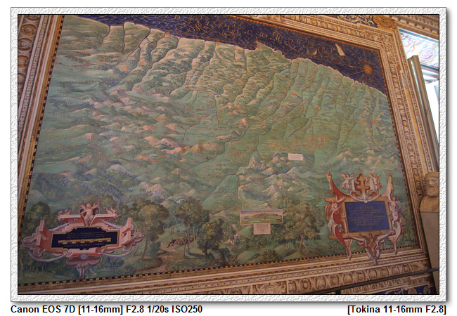 掛毯陳列室之後,馬上就是地圖陳列室。地圖陳列室裡描繪義大利各城市和沿海島嶼地形圖,兩旁牆上40幅地圖被認為是當時地理上最重要的文獻。兩旁的地圖加上浮雕的天花板,整個走廊顯得超級華麗。
