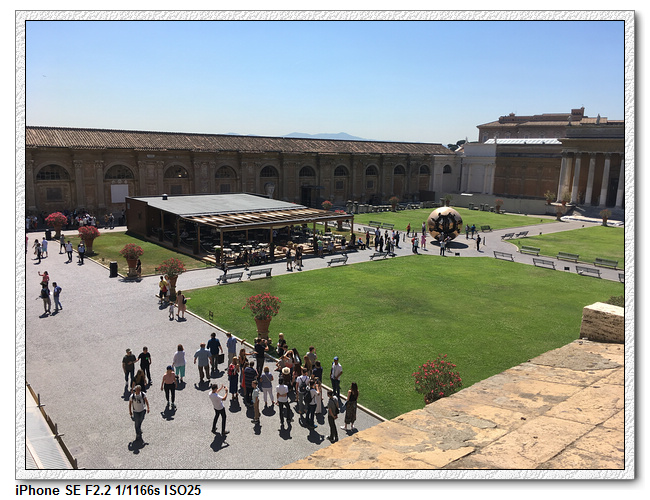 西斯廷禮拜堂後,順著幾個展示廳之後,走出博物館。網友們都描述離開梵蒂岡博物館時,會有一個兩個螺旋的樓梯,我們這次居然"沒有"走到,一出西斯廷禮拜堂,跟著人群被"擠"出去,默默地直接看到回收導覽機的籃子(也不用證件,根本不怕我們這些遊客把它帶走吧?),接著,就出去了。
