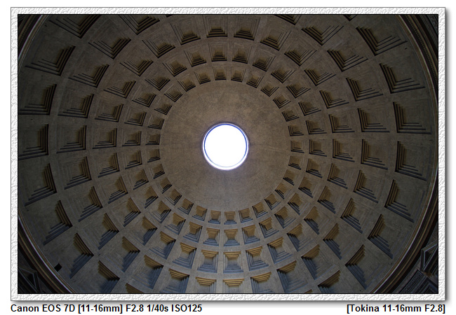 萬神殿的結構簡潔明瞭,主體呈圓形,頂部覆蓋著一個直徑達43.3米的穹頂,是自建成後到1436年間最大的穹頂。穹頂的最高點也是43.3米,頂部有一個直徑8.9米的圓形大洞,用於採光。這個洞也是萬神殿唯一的採光點,這樣以來光線從頂部泄下,並會隨著太陽位置的移動而改變光線的角度,給予人一種神聖莊嚴的感覺,十分適合宗教建築的本性。