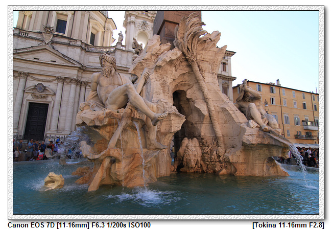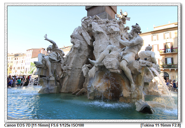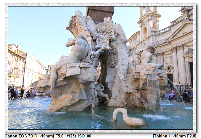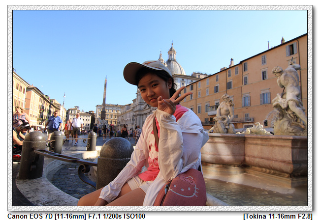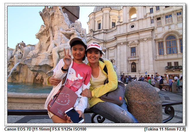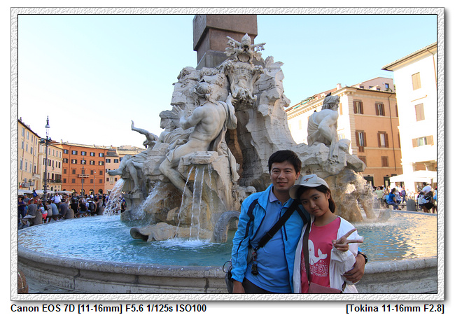 我們提著大包小包的紀念品,來到也是離萬神殿不遠處的一個噴泉。之所以知道這個噴泉,是因為它是電影「天使與魔鬼」中水暗示的案發地,第四位紅衣教主就是被丟進四河噴泉裡。