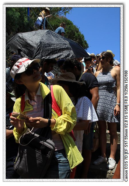 ▼【往下走排隊,滿滿人潮,還沒遮陽的地方】