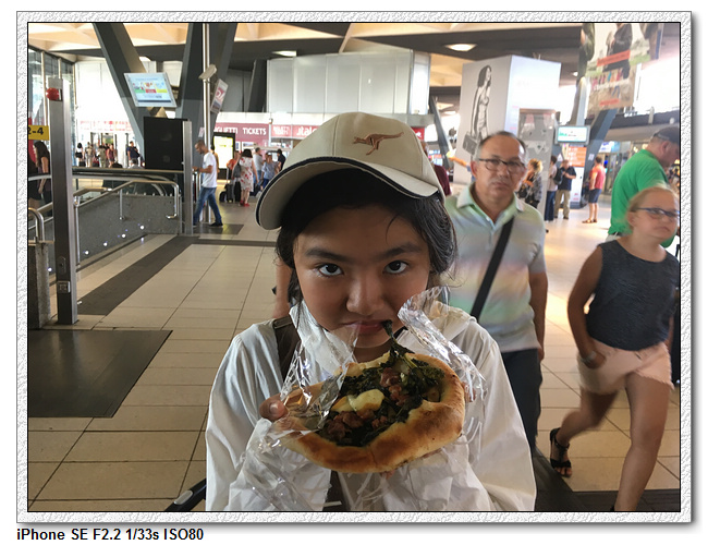 拿坡里的地下一樓是私鐵區,往上一層樓看起來就是國鐵、歐洲之星月台區。搞不清楚情形的小羽媽在樓下顧行李,小羽、小羽爸到樓上買中餐,還是之前的同一家店。買好各自的pizza,就回頭找小羽媽一起拿行李到樓上電子看板區,等待確認我們所搭.italo的月台。連著兩次搭乘,覺得.italo每次提供月台的速度,總是比國鐵慢,讓我們這種心慌慌的遊客,都相當緊張。55分的車子,38分才顯示月台地區,每顯示一個,就一群人魚貫的往那走去,感覺很好玩。