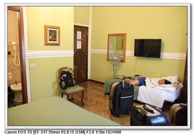 在佛羅倫斯的住宿,也是在車站附近。三點50左右抵達佛羅倫斯中央車站,雖然也是有小找一下路,但,十分鐘後我們就已經拉著行李到我們接下來三天要住的旅館。