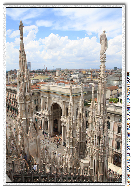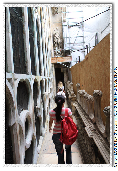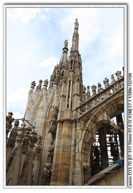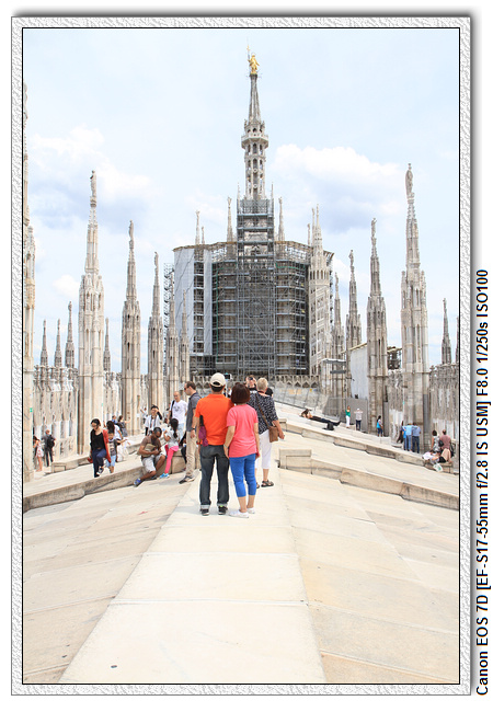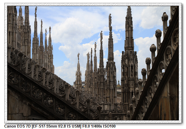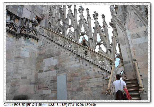 到處是尖塔的米蘭教堂,身在其中,其實和其他的高塔感覺很不相同的,背景是一個個的尖塔,還不錯。米蘭教堂登塔,由於有一些樓梯是位於室外,在登頂的過程,有小刺激一點,但,真的登到頂後,走下來,就覺得還好。