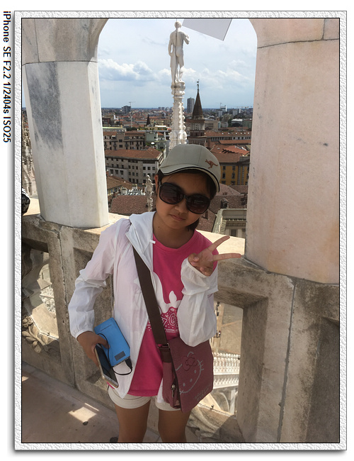 果真登米蘭大教堂塔,除了坐電梯外,還是要爬些樓梯的。但,比之前幾個教堂、斜塔好多了,感覺沒有走很多樓梯,就先到其中一層外部。