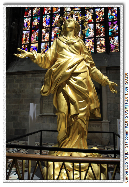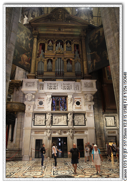 看教堂,對於我們這些沒人文氣質的人而言,就像看台灣的佛寺。雖然是世界第四大教堂,也是義大利最大的主教座堂,小羽媽一看到坐位,是先坐了一下,讓小羽爸去探路,雖然教堂內有導覽機,可以投幣看簡介,但我們沒有嘗試。