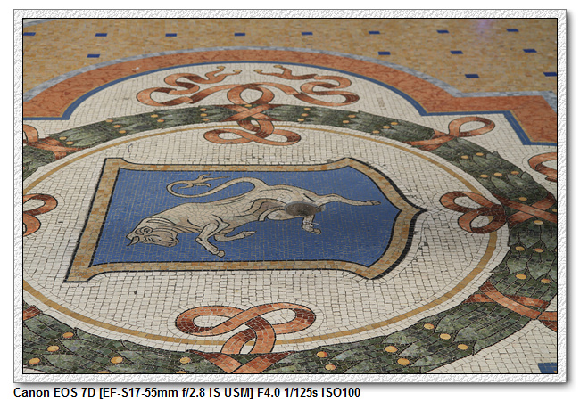 ▼【艾曼紐二世拱廊最著名的點,金牛座圖樣的鑲嵌畫】