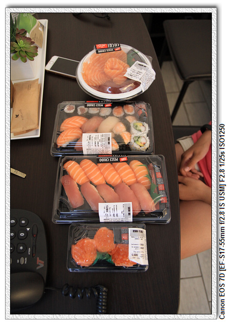 回到中央車站,原本只是順到超市裡逛逛,沒想到看到超市裡有賣壽司,於是三人決定今天的晚餐在米蘭中央車站裡的超市買壽司,這裡的壽司不便宜,三人各買一盒竟也買到50歐。買了壽司帶回旅館,順便check in。櫃台小姐竟然也對壽司有興趣,還詢問我們是在哪買的。
