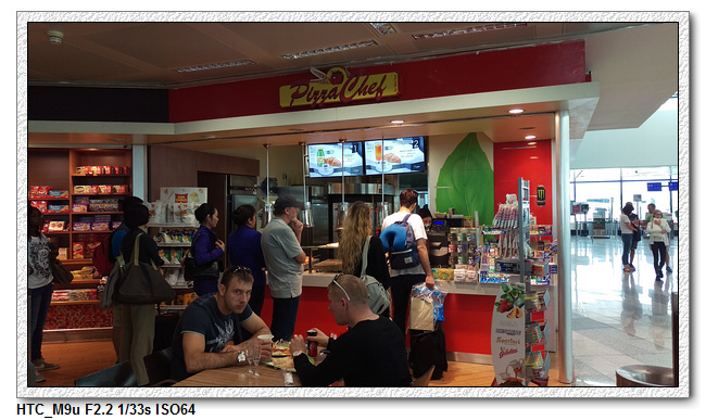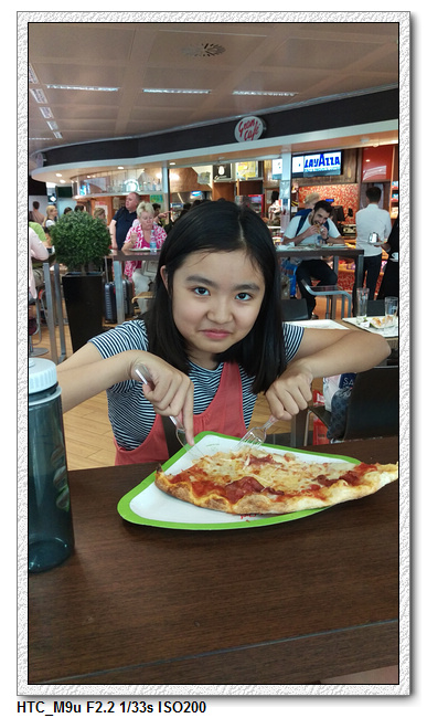 在機場辦完check in手續以及入關後,小羽又肚子餓了,我們買了機場內的披薩墊墊肚子,待會機上還有餐飲要吃。