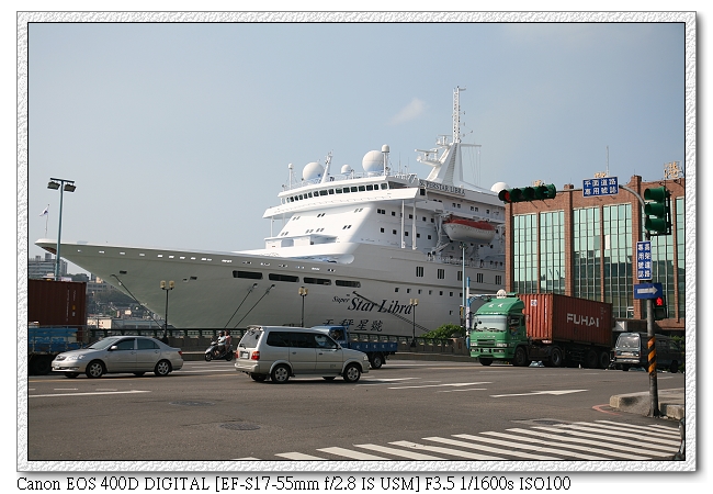 當天下午三點就到達基隆港準備排隊登船。網路上說登船會排隊很久,因此提早一點到達,一方面可以搶到比較好的位子,一方面提早登船還有BBQ。一到港口,就看見天秤星號已經在等著我們了。