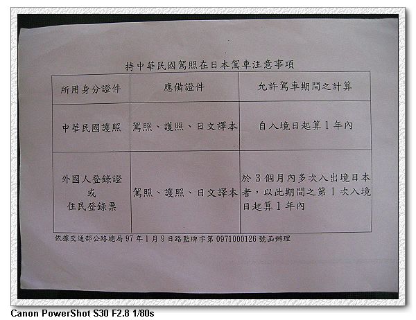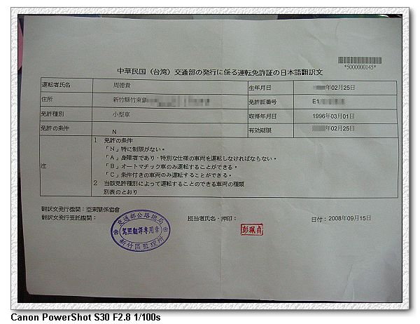 出發前一天(最後一天才辦,膽子還蠻大的~~~),到監理所辦駕照日文譯本(台灣的國際駕照日無法在日本使用)。
