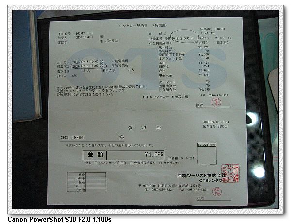 到了OTS,他們已經準備好了車子等我們。進入辦公室辦手續(外面好熱~熱~熱~後來發現Colorado 400t已經有OTS的座標了,只是看不懂日文)。好不容易整個辦好(台灣駕照日譯本、駕照正本以及預約號碼), 服務人員會給收據以及中文版的提醒事項。