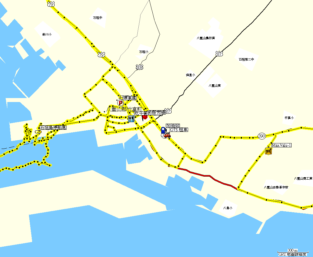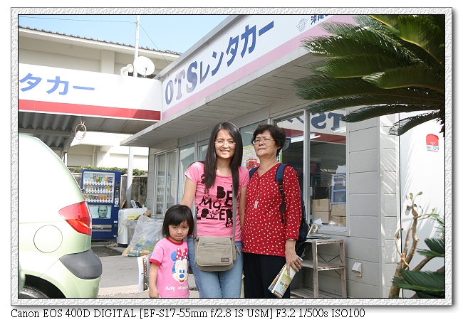 到石垣島的港口,由於我們出關時間日本時間已經九點了,錯過OTS租車公司的時間,完全沒有想法該往哪個方向前進(沒有目標,GPS無用武之地),原本日本OTS租車公司八點半會到港口接我們的。走道港口大門,本來是想詢問當地日本警察OTS租車公司在哪個方向。才說了OTS...警察就熱心的幫我們聯絡OTS請他們來接(應該是遇到很多次了,連電話都記起來~真強~)我們等了快15分鐘,OTS才緩緩駛來。(事後小羽媽看了日本人的開車方式,總算瞭解為什麼我們等了快15分鐘,OTS才來) 。在門口有很多計程車等著載客,有些人的玩法是跟計程車談價碼包車。什麼,不會說日文~沒關係,貼心的日本人已經幫你想好了,司機直接跟你用中文對談,台語馬ㄟ通喔~厲害吧~