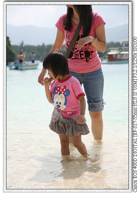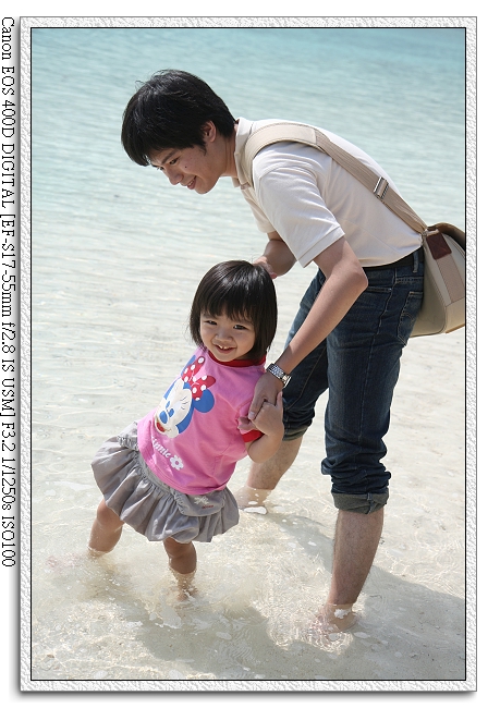 愛玩水的小羽,玩到褲子都濕了也不在乎(平常可是會吵著要換衣服)。偷撿海面上的樹葉,還偷偷舔,被小羽爸發現,拍照存證。事後問小羽什麼味道,竟然說"甜甜的",昏倒中~~~~