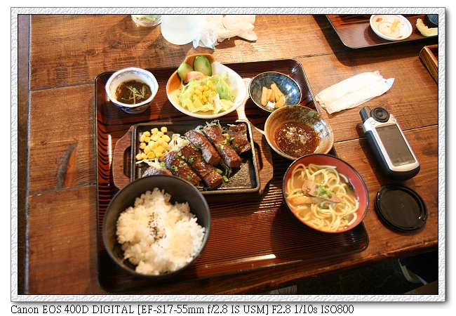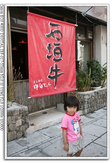 徒步四處晃晃,最後隨便找了一家店(原本想去居酒屋的,可是找到的居酒屋都下午才開始營業啦!!),餐點還不錯,石垣牛好好吃喔~~~我們一共點了三個套餐加一份豆腐(小羽愛豆腐)。後來陸續進來一些同船的人。最後這家店就被臺灣人占領了。(老 板娘可忙的很,因為她都聽不懂我們說啥,大家比手畫腳指來指去~最後還拿出紙跟筆用寫的~~~)