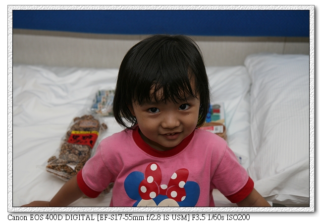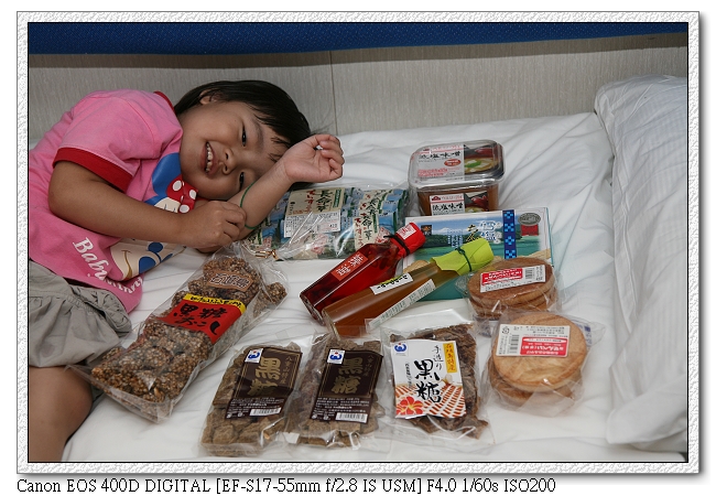 回到郵輪展示台北阿媽戰利品,搗蛋小羽陪襯演出。