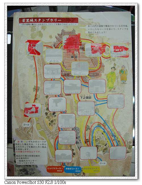 首里城有很多可以蓋紀念章的地方,一開始沒有拿專門用來收集紀念章的小冊子,所以一開始是蓋在旅遊書上。小羽喜歡蓋印章,這裡可是天堂,每走兩三步就有一個紀念章。真是夠了~