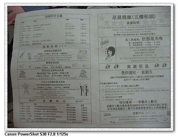 晚上的活動一樣很豐富,有多場表演。我們挑了一場是郵輪員工表演秀"狂想星光夜"(小羽爸又點了一杯"藍色夏威夷"),以往船内的表演禁止攝影及照相,因此表演前特別將相機包放回房間。沒想到一開始主持人便說"這場表演可以盡量拍,努力拍,用力拍...",唉~~~~~~~~~~~~~~~~~~~~~~~~不過這次小羽就頗專心的觀賞,還會隨著節奏拍手,很可愛(旁邊的人有稱讚喔~)。