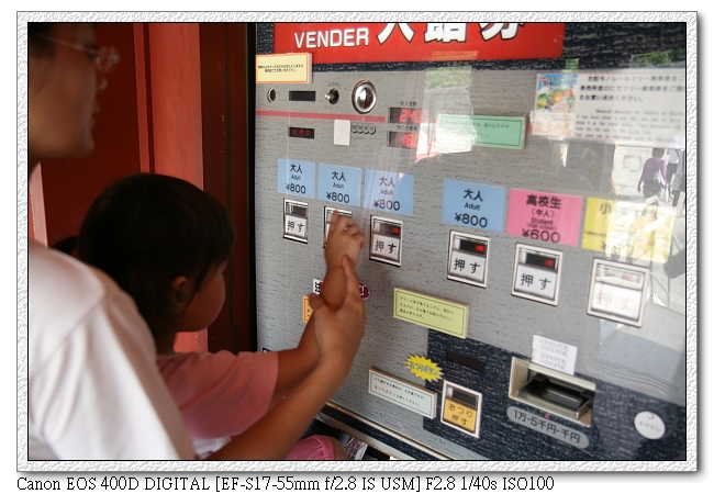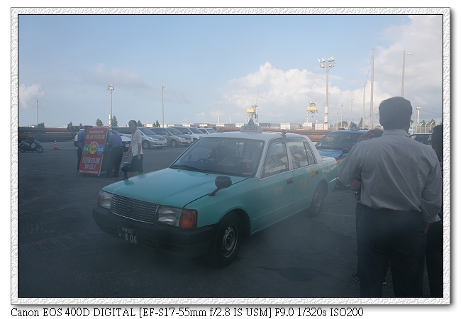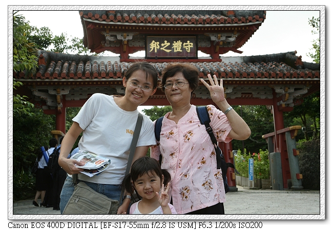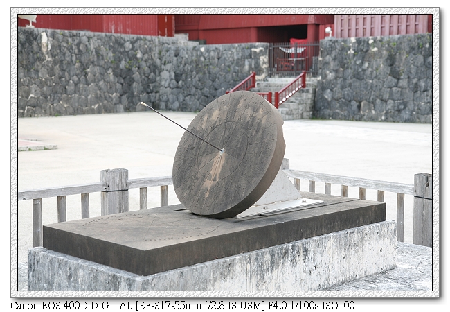 那霸的計程車跟台灣比起來遜了點,大多是比較舊型的車子(鏡頭起霧了~),不過內部倒是很乾淨。由於今天下船時間只有5小時(台灣時間13:30要登船),因此找了輛計程車,直衝"首里"(跳表1700日圓,有200元是停在路邊"稿危")。司機先生熱心的問我們回程是哪時候,想要再多賺一筆。好不容易才跟他說明白我們會自己坐電車回去。