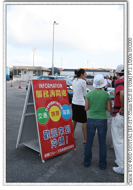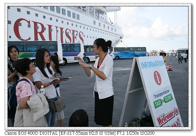 日本很貼心,知道那霸的計程車司機不會說中文,直接派"駐船港"小姐幫你翻譯,任何問題或想去哪她可以幫忙跟司機說,完全用不到第二外國語。