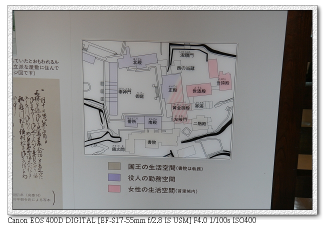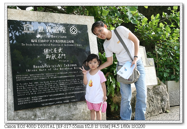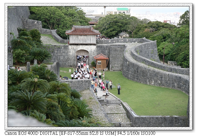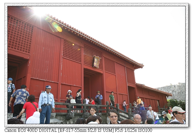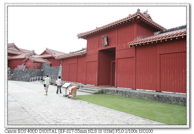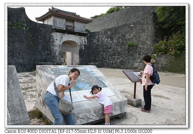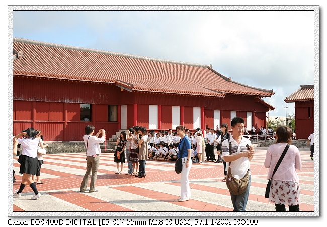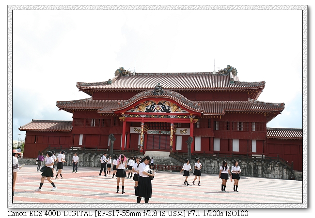 開始我們的首里之旅,一路上很多日本中學生也來參觀(應該是校外參觀,都穿制服)。日本學生真的很愛玩手機耶~很多人都是拿著手機一直按,不知在玩什麼。小羽則感覺不出有特別新鮮的模樣,就像平常在台灣去看一個古蹟一般,一直擋我鏡頭。