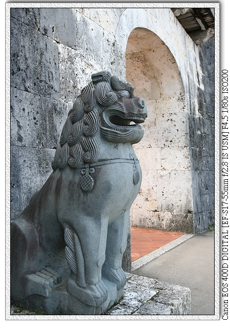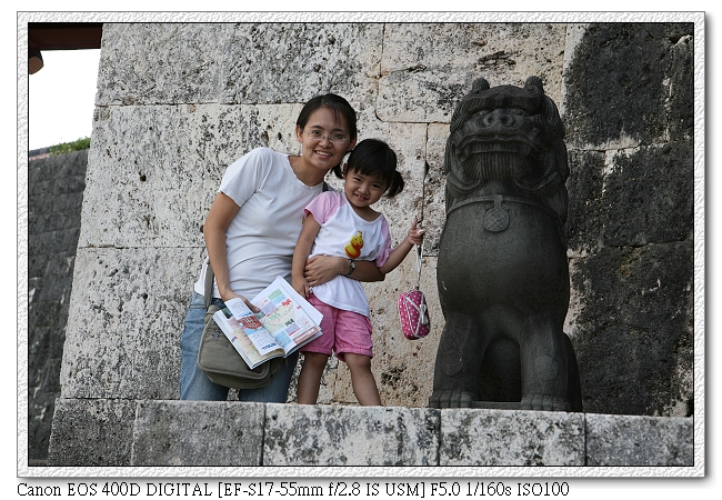 首里城帶有中國古城的味道(個人感覺),每個城門都有兩隻獅子。應該說整個陸地行程都被獅子環繞(哈~我們也有買小獅子回台灣"驅魔辟邪"),TSMC機台有些是日本製,日本買的"石敢當"應該比較有用吧~(會不會想太多?)。 |