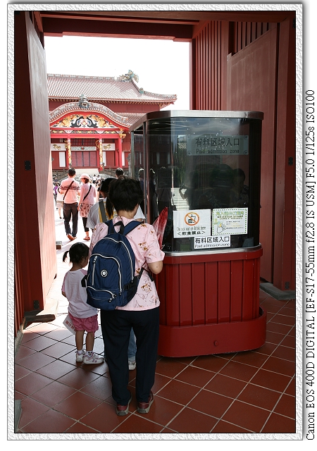 首里城內部參觀,這裡需購票(大人800日圓,六歲以下小孩不計費),讓人感覺很貼心。也因需購票入內,因此門口聚集一些人,可能在考慮要不要進去。