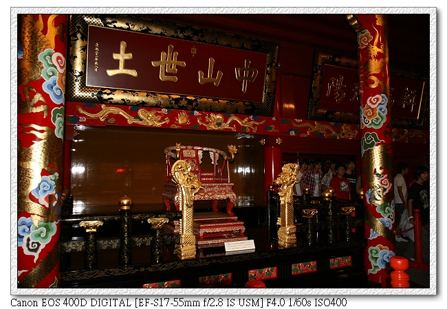 其實內部也不是完全不能拍照,比如"龍椅"就可拍,也可開閃光。不過人很多,要抓住瞬間的機會。