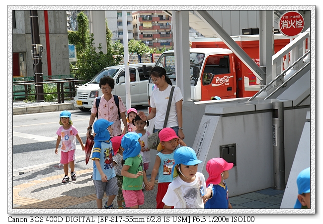 到了牧志站下車後,剛好遇到壺屋小學的小學生出遊,小羽很害羞不敢跟小朋友打招呼(日本小學的帽子很可愛,真想買一個給小羽戴~)。