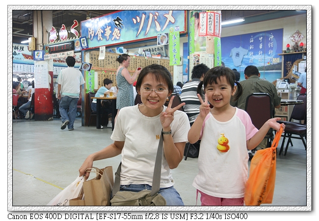 午餐時間到~聽說和平通內的公設市場二樓有家店,老闆娘是台灣苗栗人嫁到日本,還上過電視(好像是GTV)。很好奇去找找。到了二樓,看見有間祭拜土地公的店(應該是這家吧~完全憑印象~)。坐定位後,本來想亂指~通通來一份~~~突然聽見熟悉的聲音,"可以說中文喔",天啊~店員盡然會說中文耶~原本以為只有老闆娘會說(後來也沒見到老闆娘)。這裡的店員大都會說中文,不過口音有點點怪,可能是日語說太多了~嗨~