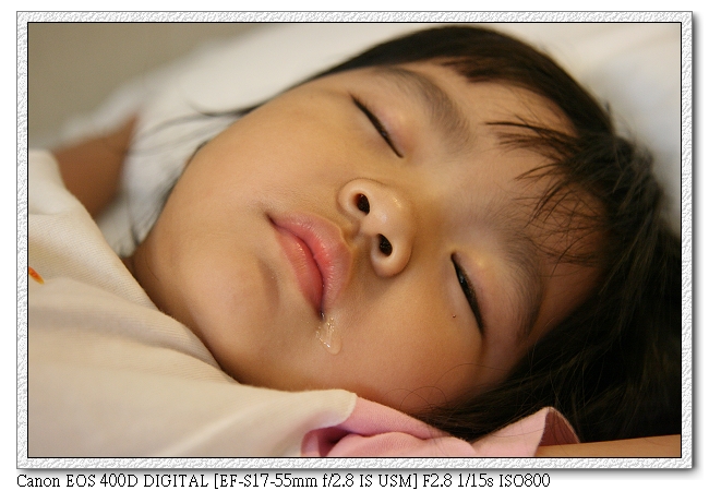 之前逛街曬昏頭,所以回到船上後,睡了一覺。小羽睡覺流口水,拍照留念~哈哈~
