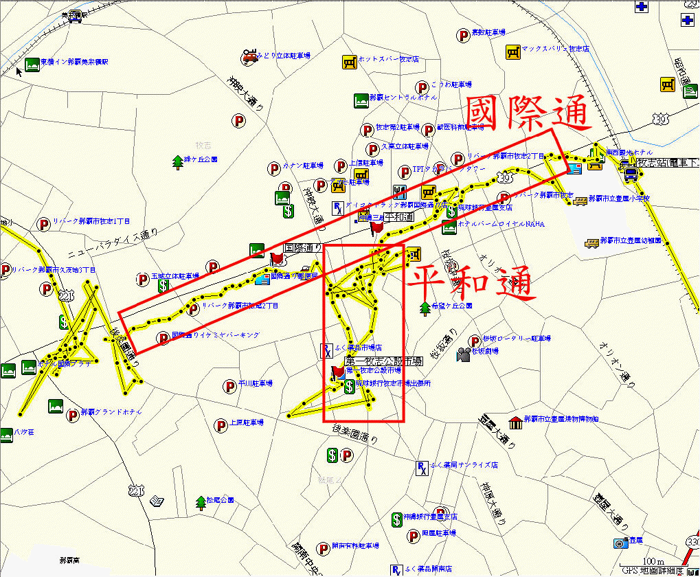 牧志站下車後,就是一般觀光客(就是我啦~)必到的國際通。可看到有名的地標"三越百貨"。