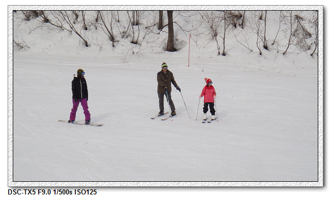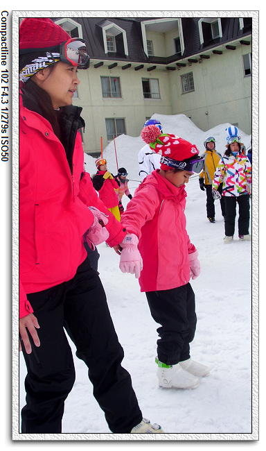 小羽媽的部分,一個早上都在最簡單的滑道中度過,初階共滑了4次(2次是不拿雪仗),中階則滑了5次,