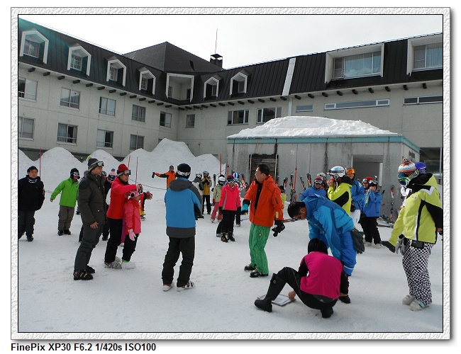 這次比較貼心的是,每個人的雪板以及雪鞋都有貼名字標籤,至少不會像去年一樣有拿錯雪板的事情發生。