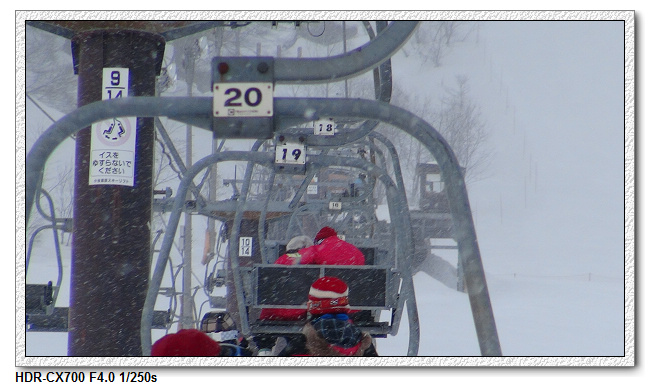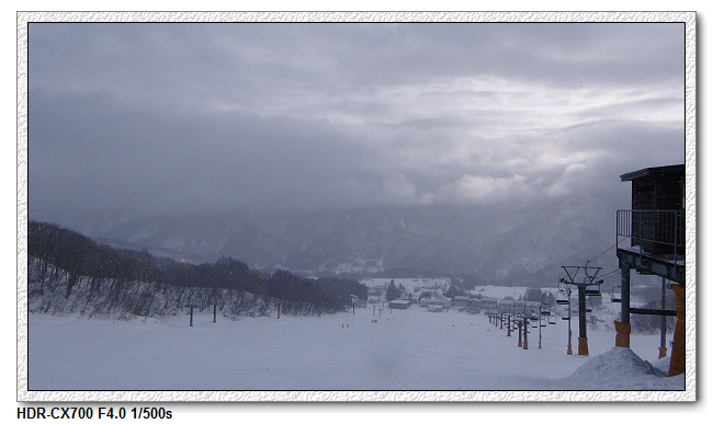 但也沒有糾正姿勢,就這樣一直滑下去,一直坐纜車, 偏偏第二天的天氣相當不好,早上是冰,中午後開始下起雪來,
