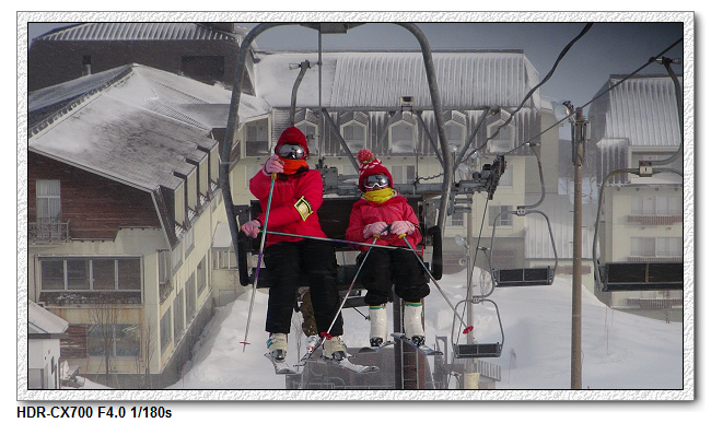 ▼【 小羽跟小羽媽坐纜車,結果小羽媽的雪杖掉下去(4號柱)】