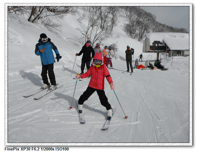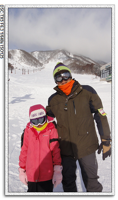 其實小羽媽最後一趟在4號滑道跟在小羽後面時,有打算在直線部分練併腿,但速度實在太快,小難控制,而且小羽的滑行實在相當穩定的快,要亦步亦趨地跟著實在無法用剛要練習的招式處理,再加上手、腳實在太凍了,兩個人就偷懶了,還被小羽爸碎念怎麼兩次滑雪最後半天都撐不下去,實在是這活動真的不是我們愛的啊!!