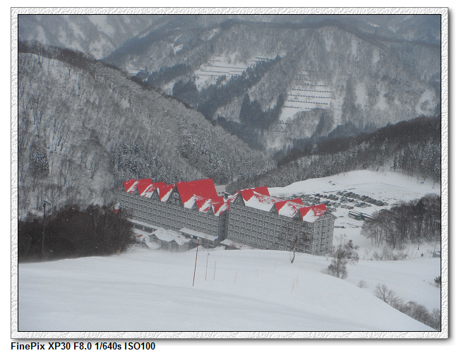 但滑回旅館前+一趟4號滑道就已經2點半了,風雪越來越大(其實是雪鞋內部是濕的,導致小羽、小羽媽手、腳冰冷),小羽一直唉唉叫,小羽媽就決定和小羽直接回旅館休息(為此,小羽還很乖地聽小羽媽話,答應要給拍照,等等) ,小羽爸則繼續在4號、5號滑道練習併腿,。